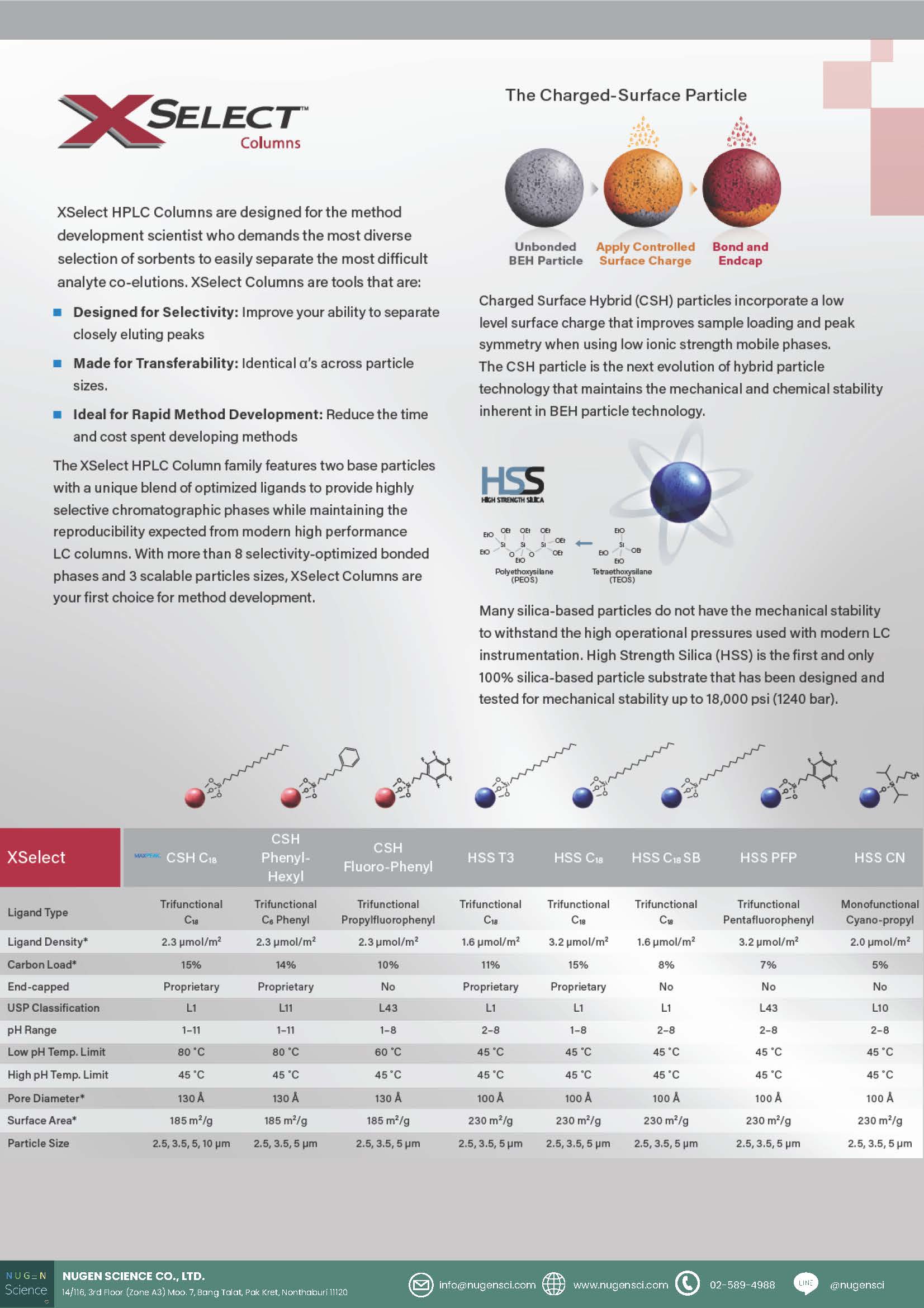 Designed to help you achieve reproducible and highly selective chromatographic separations, the XSelect Column family features two base particles technologies, Charged Surface Hybrid (CSH) and High Strength Silica (HSS). With XSelect Columns, method development scientists like you can achieve a wide range of selectivities across all application areas, without compromising performance.